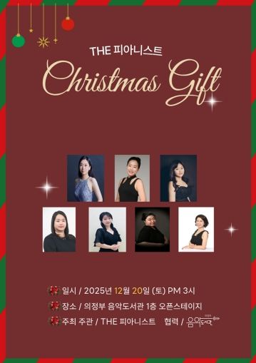 (포탈뉴스통신) 의정부음악도서관은 12월 20일 오후 3시, 1층 오픈스테이지에서 ‘The 피아니스트 크리스마스 선물’ 공연을 개최한다.