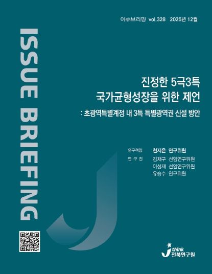 천지은 연구위원은 “법개정을 통해 전북특별자치도가 자립적인 초광역권으로 인정받게 되면, 단순한 재정 확충을 넘어 패키지형 지원과 초광역특별협약 체결 등 5극 3특에 관한 중앙정부 및 지자체 간 거버넌스 구조 안에 자연스러운 편입이 가능해진다”고 강조했다.