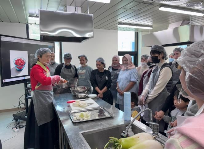 이번 체험은 참여자들이 직접 깍두기를 담그며 발효·절임 등 한국문화와 친숙해지는 데 중점을 둔 프로그램으로 다양한 국적의 주민들이 모여 각 나라의 유사한 음식 문화를 소개하고, 서로의 식문화를 자연스럽게 공유하는 시간도 이어졌다.