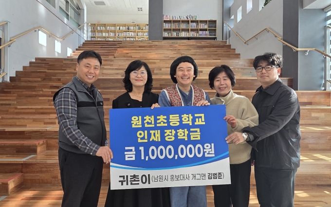 (포탈뉴스통신) 남원시는 12월 18일, 남원시 홍보대사이자 주천면으로 귀촌한 개그맨 김범준 씨가 원천초등학교 학생들을 위해 인재장학금 100만 원을 기부했다고 밝혔다.