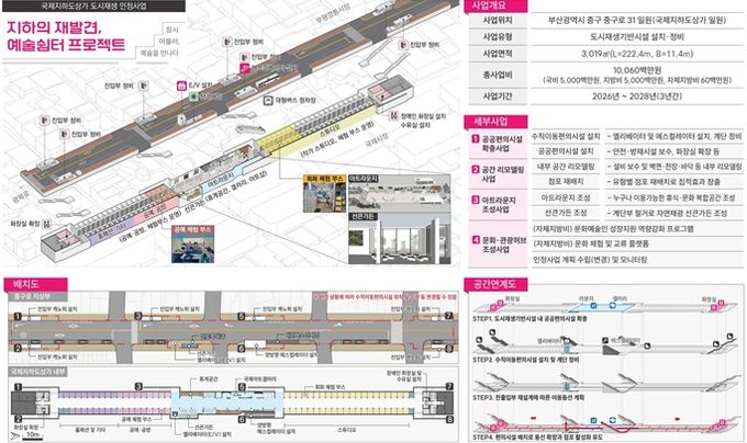 중구 광복·부평동 ‘지하의 재발견, 예술쉼터 프로젝트’는 국제지하도상가 내 부족한 화장실과 휴식 공간을 확충하고 공연·전시 등 문화 행사를 도입해 지역 활성화를 도모하는 사업이다.
