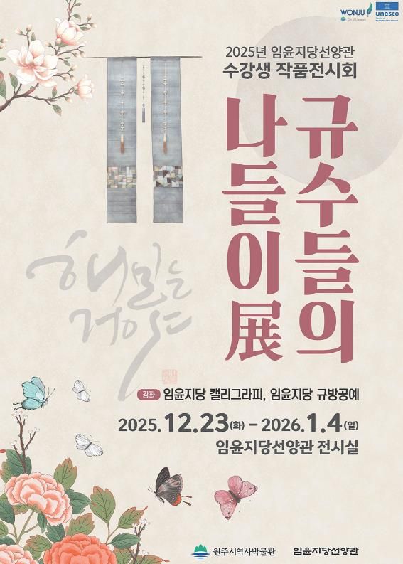 (포탈뉴스통신) 원주시 임윤지당선양관은 오는 23일부터 내년 1월 4일까지 선양관 전시실에서 수강생 작품전시회 ‘규수들의 나들이展(전)’을 개최한다.