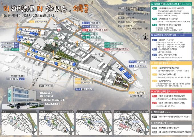 특히 주민생활복지서비스 제공을 위한 거점공간 조성, 자율주택정비사업과 민간정비 지원, 골목길 정비사업을 통해 주거환경을 개선하고, 지역 여건에 맞는 정주 기반을 마련한다는 방침이다.