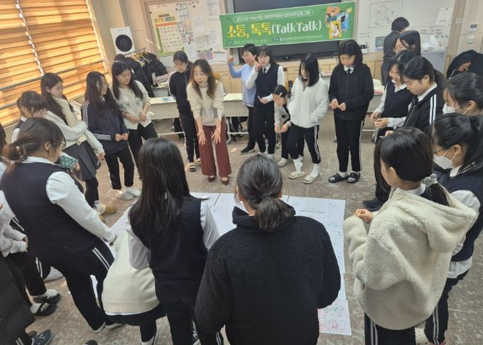 (포탈뉴스통신) 경상북도영덕교육지원청 Wee센터는 2025년 12월 17일과 19일 이틀간 영덕여자중학교 1학년 46명을 대상으로'소통, 톡톡(Talk,Talk)'집단상담을 운영했다.