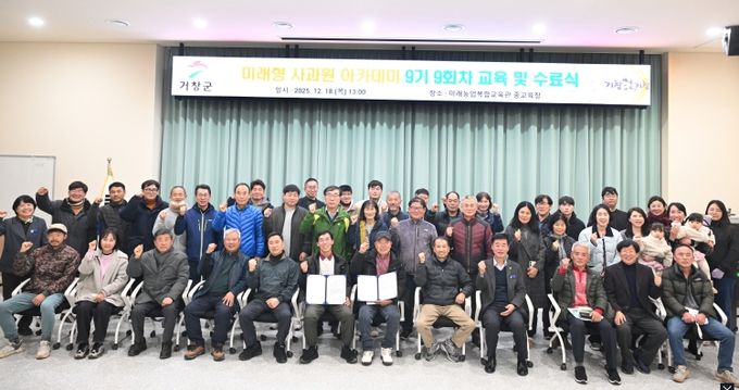 (포탈뉴스통신) 거창군은 지난 18일 농업기술센터 미래농업복합교육관 2층 중교육장에서 49명의 교육생이 참석한 가운데 ‘미래형 사과원 아카데미 9기’ 수료식을 개최했다.