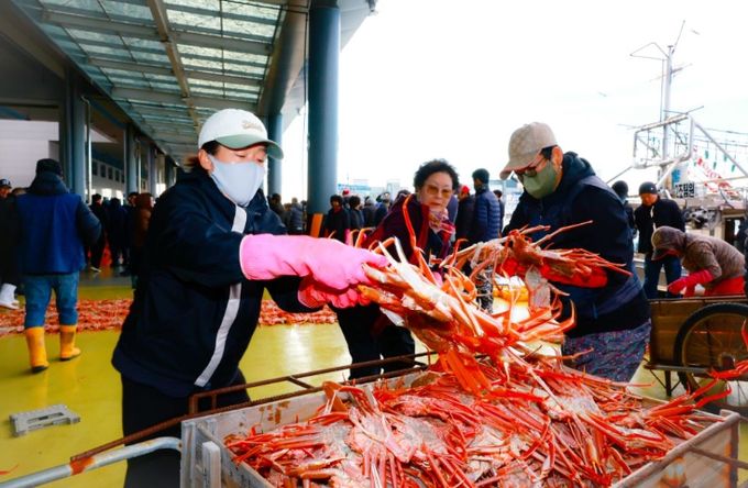 (포탈뉴스통신) 차가운 겨울 바다의 진미 울진대게가 죽변항과 후포항을 붉게 물들인다.