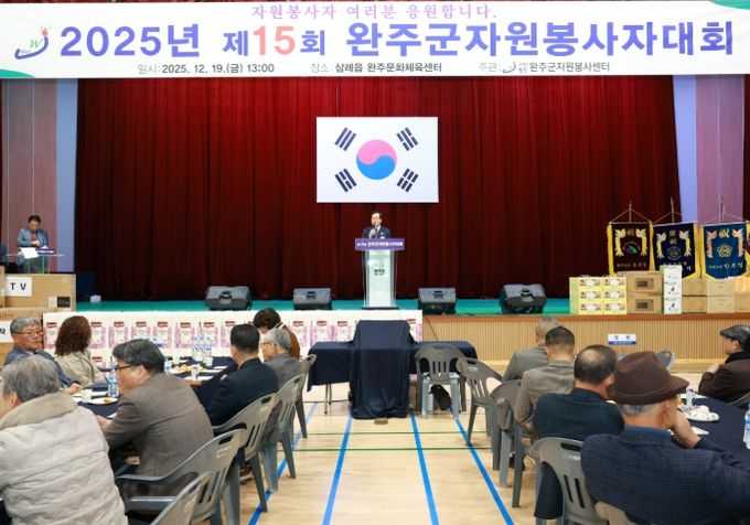 19일 완주군에 따르면, 전날 열린 이날 행사에서는 지역사회 발전과 나눔 문화 확산에 기여한 우수 자원봉사자와 봉사단체에 대한 표창이 수여됐으며, 복지·환경·안전·재난 대응 등 다양한 분야에서 봉사활동을 펼친 공로를 인정받았다.