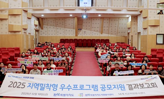 (포탈뉴스통신) (사)전북특별자치도자원봉사센터는 2025년 12월 19일 전주중부교회 비전센터에서 전북특별자치도 15개 도‧시군 자원봉사센터 관리자 및 자원봉사자 100명이 참여한 가운데『2025 지역밀착형 우수프로그램 공모지원 결과보고회』를 개최했다.
