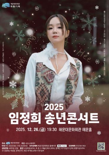 (포탈뉴스통신) 해운대문화회관은 오는 12월 26일 오후 7시 30분, 해운대문화회관 해운홀에서 송년 특별기획 공연인 ‘2025 임정희 송년콘서트’를 개최한다.