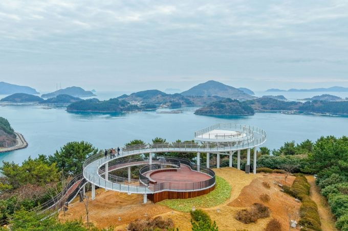 이번에 완료되는 달아전망대는 기존 전망데크보다 높이를 높여 다른 지장물의 시야 방해없이 사량도, 욕지도, 남해 등을 두루 조망할 수 있고, 보행이 불편한 분들도 쉽게 접근할 수 있도록 설계됐다.