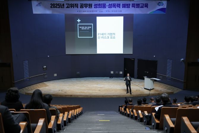 (포탈뉴스통신) 경기도는 22일 경기도청 다산홀에서 김동연 경기도지사를 포함해 고위직 공무원 약 50명을 대상으로 ‘직장 내 성희롱·폭력 예방 특별교육’을 실시했다.