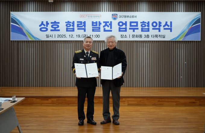 (포탈뉴스통신) (재)대구광역시동구문화재단(이사장 윤석준)과 대구동부소방서가 지난 12월 19일, 지역 문화시설의 안전관리 강화와 재난 대응 협력 구축을 위한 업무협약(MOU)을 체결했다.