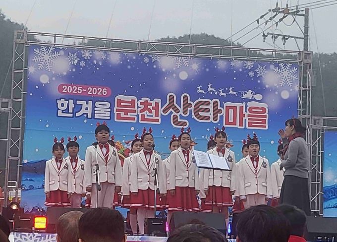(포탈뉴스통신) 봉화군 소천면 분천산타마을에서 지난 20일(토) 개최된 ‘2025 한겨울 분천산타마을 개장식’ 이 지역주민과 관광객들의 열띤 호응 속에 성황리에 열렸다. 이번 개장 축하공연에는 봉화교육지원청이 운영하는 봉꽃송이 청소년 합창단이 참여하여 한겨울 추위를 녹이는 따뜻한 무대를 선사했다.