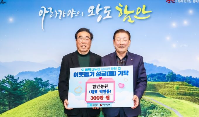 (포탈뉴스통신) 함안군은 지난 22일 함안농원(대표 박관흠)에서 연말을 맞아 성금 300만 원을 기탁했다고 밝혔다.