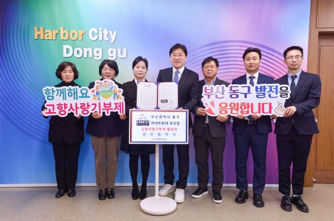 협약에 따라 동구는 고향사랑기부제 홍보자료 등을 커넥트현대 부산점에 제공하고, 커넥트현대 부산점은 직원과 고객 등에게 고향사랑기부제를 홍보하며 기부문화 확산과 지역경제 활성화를 위해 상호협력하기로 했다.