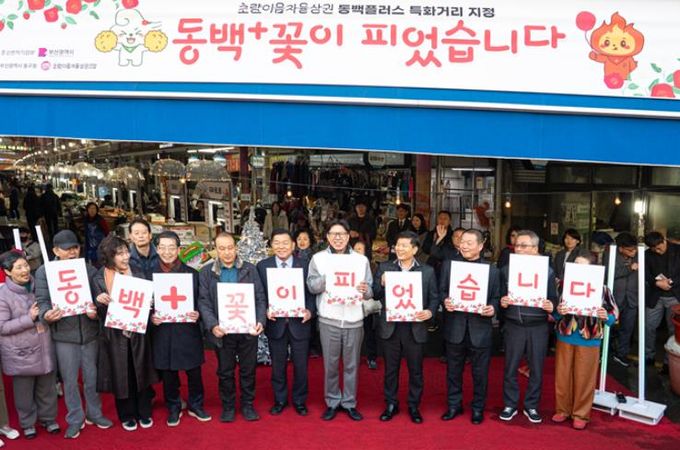 (포탈뉴스통신) 부산 동구 초량전통시장의 초량이음자율상권이 부산동백전 동백플러스 특화거리로 지정됨에 따라 이를 기념하는 행사 '동백+꽃이 피었습니다'가 열렸다.