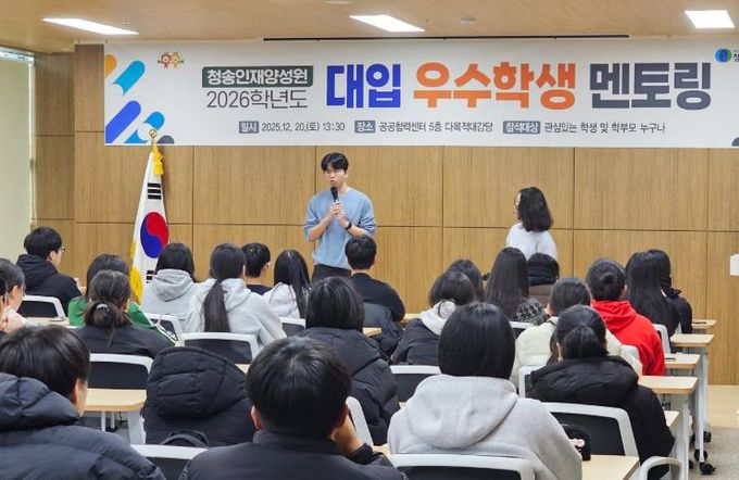 (포탈뉴스통신) 청송군은 지난 20일 공공협력센터 다목적 대강당에서 청송인재양성원 재원생과 관내 학생 및 학부모를 대상으로 ‘2026학년도 대입 우수학생 멘토링’을 개최했다고 밝혔다.