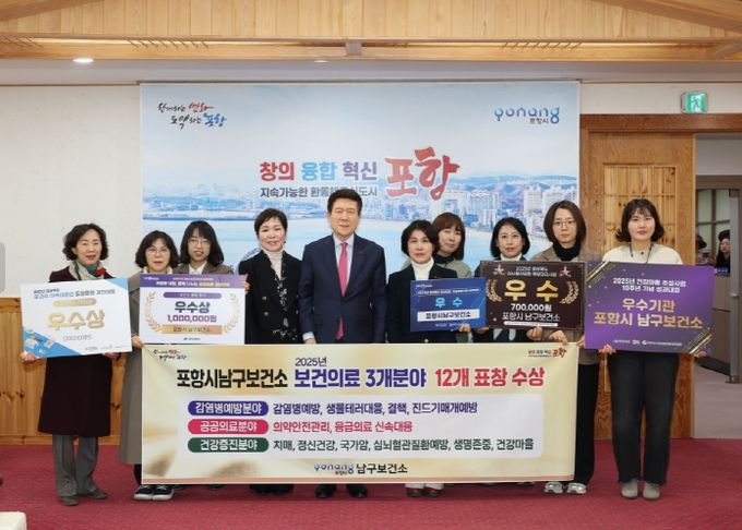 (포탈뉴스통신) 포항시 남구보건소가 2025년 한 해 동안 보건의료 전 분야에서 탁월한 성과를 거두며, 중앙부처와 경상북도 평가 등에서 총 3개 분야 12개의 상을 휩쓸었다고 23일 밝혔다.