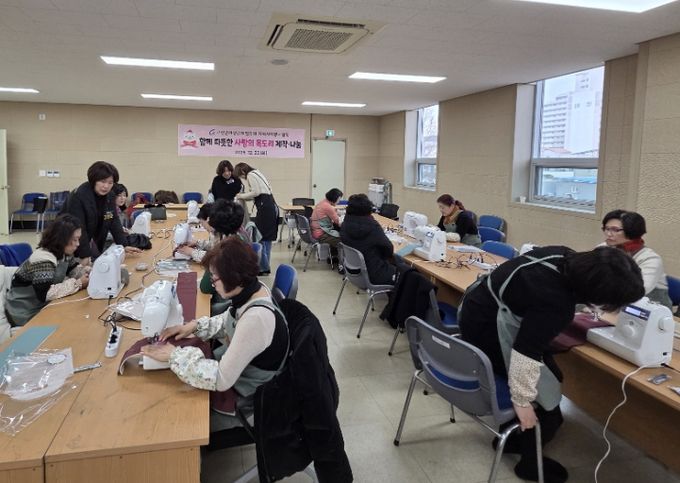 이날 행사는 연말 연시 추워지는 날씨에 체온 유지에 큰 도움을 주는 목도리를 제작하여 관내 장애인복지시설 이용자들에게 온기를 나누기 위해 마련한 것으로 여성단체 소속 회장들이 재봉틀을 사용하여 50여 개의 목도리를 직접 만들어 ‘정성’이라는 가치를 더했다.