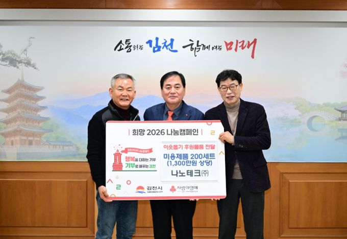 (포탈뉴스통신) 김천시는 지난 23일, 나노테크㈜(대표 김정헌)으로부터 어려운 이웃을 위한 미용 제품 200상자(1,300만 원 상당)를 전달받았다고 밝혔다.