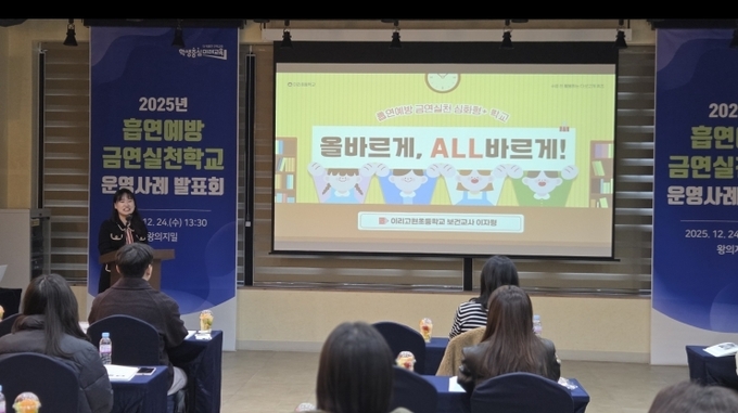 이날 발표회에는 학교 흡연예방사업 우수사례 선정학교, 심화형(심화형+ )흡연예방 금연실천학교 담당교사들이 참여해 올 한해 운영 성과와 사례를 공유했다.
