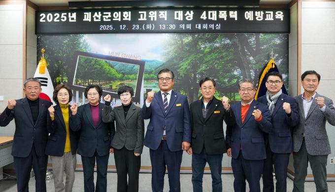 (포탈뉴스통신) 괴산군의회는 23일 의원들과 5급이상 관리자를 대상으로 4대폭력 예방 통합교육을 실시했다.