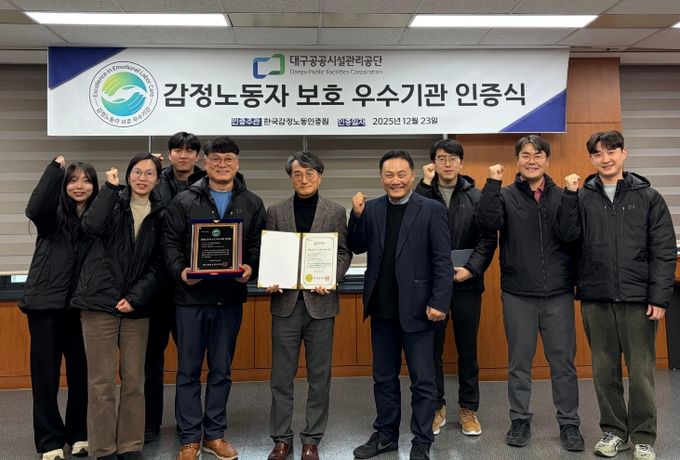 (포탈뉴스통신) 대구공공시설관리공단은 12월 23일, 고객 응대 직원 보호를 위한 지속적인 정책 운영 성과를 인정받아 ‘감정노동자 보호 우수기관 인증’을 획득했다.