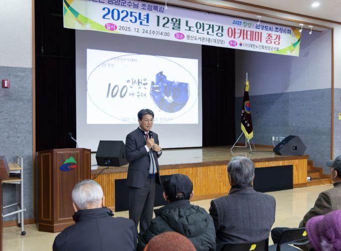 김 군수는 우리 군의 고령친화정책과 2026년 추진 예정인 복지사업에 대해 수강생들의 눈높이에 맞춰 자세히 설명하며, 어르신들의 삶의 질 향상을 위한 군의 노력을 강조했다.