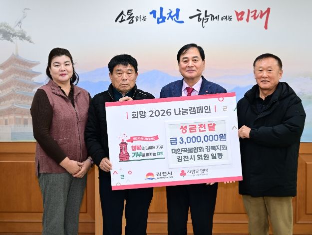 (포탈뉴스통신) 대한곡물협회 김천시지부(지부장 윤진채)에서는 26일 김천시청을 방문해 ‘희망2026 나눔캠페인’ 성금 300만 원을 기부했다.