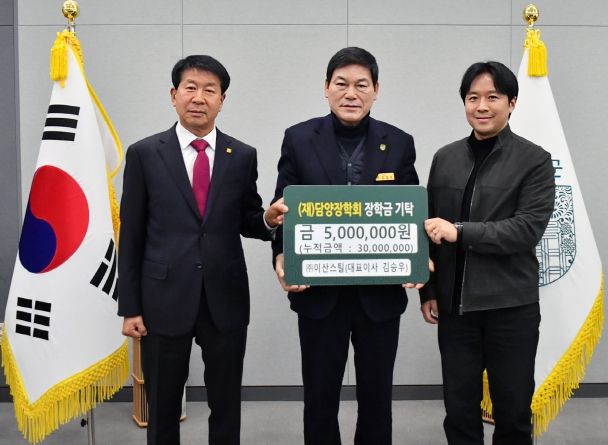 (포탈뉴스통신) (재)담양장학회는 지난 26일 ㈜이산스틸(대표이사 김승우)에서 5백만 원을, ㈜고서삼화자원(대표 이형수)에서 2백만 원을 기탁했다고 밝혔다.
