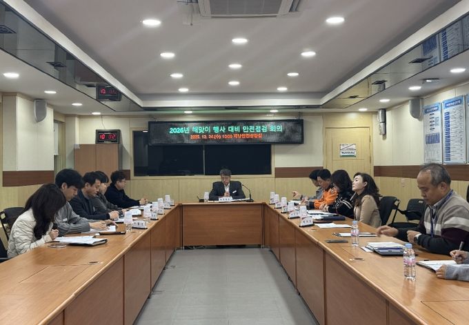 (포탈뉴스통신) 광양시는 지난 24일 재난안전상황실에서 해맞이 행사를 개최하는 8개 읍면동과 광양경찰서, 광양소방서 관계자가 참석한 가운데 2026년 해맞이 행사 대비 안전점검 회의를 개최했다.