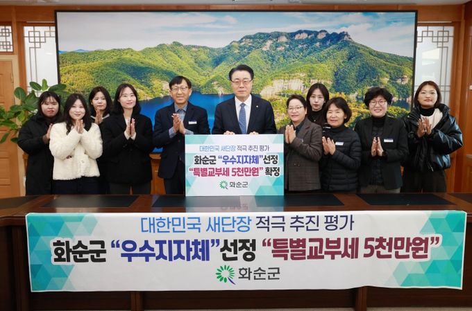 (포탈뉴스통신) 화순군은 지난 24일 행정안전부가 주관한 ‘대한민국 새단장’ 캠페인 추진실적 평가에서 우수 지자체로 선정돼 특별교부세 5천만 원을 확보했다고 밝혔다.