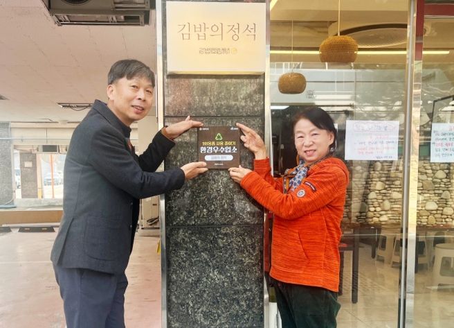 이번에 수여된 현판에는 ‘1회용품 사용 줄이기 환경우수업소’라는 문구와 업소명인 ‘김밥의 정석’이 표기되어 지역사회 내 친환경 실천의 모범이 될 예정이다.