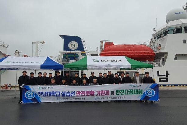 (포탈뉴스통신) 전남대학교 수산해양대학(학장 서호영)은 지난 24일 여수 신북항에서 선박실습센터 및 실습선 교직원들이 참석한 가운데, 실습선의 안전 운항과 승선자의 무사 안녕을 다짐하는 ‘전남대학교 실습선 안전기원제 및 안전 다짐 대회’를 개최했다.