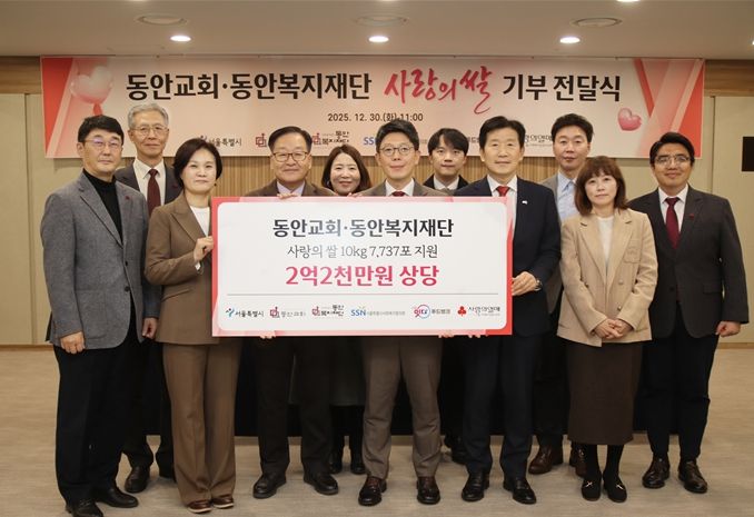 ‘사랑의 쌀’ 기부전달식은 30일 11시 서울시청에서 진행됐으며 김병민 서울시 정무부시장, 김형준 동안복지재단 대표이사, 김현훈 서울시사회복지협의회장, 신혜영 서울사회복지공동모금회 사무처장 등이 참석했다.