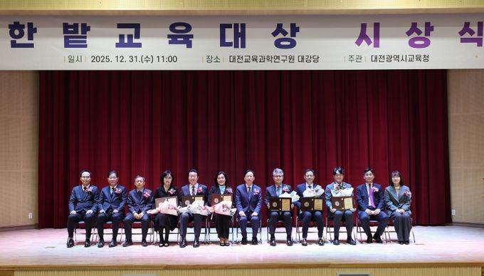 (포탈뉴스통신) 대전시교육청은 12월 31일 대전교육과학연구원 대강당에서 수상자 및 가족과 교육 관계자들이 참석한 가운데, 제36회 한밭교육대상 수여식을 개최했다고 밝혔다.