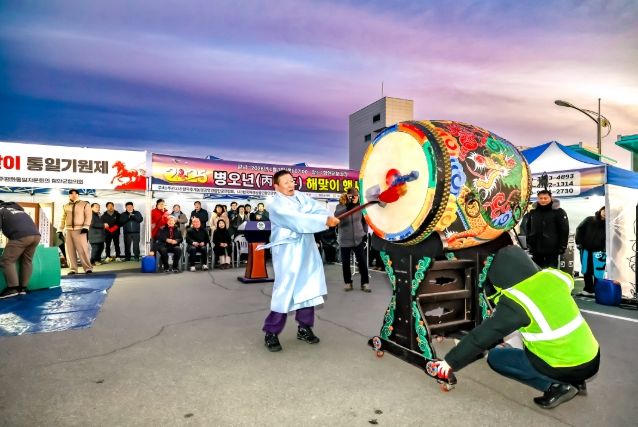 해가 떠오르는 순간에는 군수와 주요 내빈이 함께한 해맞이 리본 커팅이 진행돼 새해의 시작을 공식적으로 알렸고, 이후 풍물 한마당을 통해 군민들이 함께 어울리는 화합의 시간을 가졌다.
