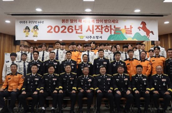 (포탈뉴스통신) 나주소방서는 2일 2026년 새해를 맞아 시무식 행사를 개최하고 한 해 동안의 각오를 다지며 지역 안전 강화를 위한 힘찬 출발을 알렸다.