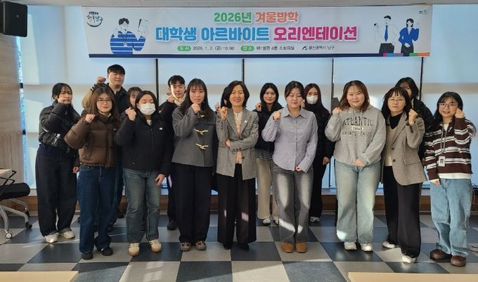 (포탈뉴스통신) 울산 남구는 겨울방학 대학생 아르바이트생 15명을 선발해 오리엔테이션을 진행하고 2일부터 본격 근무에 들어갔다고 밝혔다.