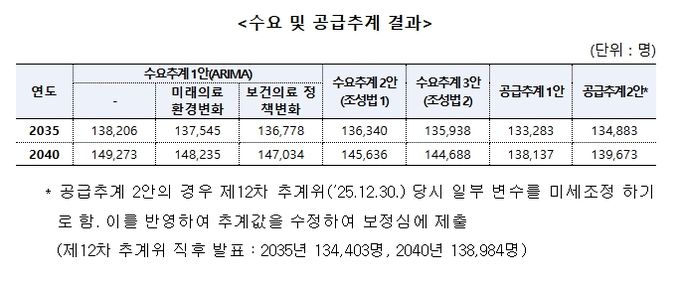 한편, 이날 보정심에 보고된 수급추계 결과는 다음과 같다.