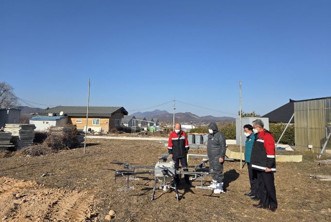 (포탈뉴스통신) 충주시는 7일 고병원성 조류인플루엔자 방생농장 일대에서 드론을 이용해 소독약을 살포하는 방제를 실시했다.