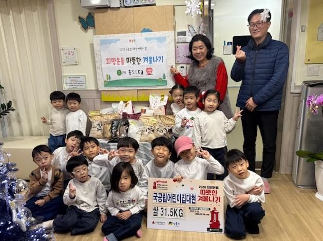 지난 12월 23일 구립대현어린이집에서는 원아들과 학부모들이 십시일반으로 모은 쌀 31.5kg을 기부하여 주민센터를 환하게 밝혀주었다.