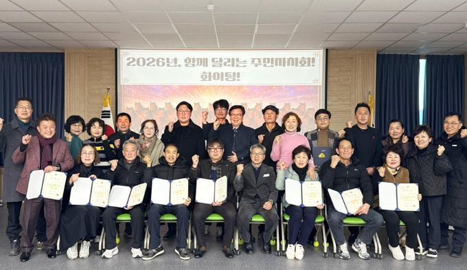 선출 결과, 신임 회장에는 양점용 위원이 선출됐고, 부회장에는 서정숙 위원, 감사에는 김수복·이현숙 위원, 사무국장에는 이진우 위원이 각각 선임돼 2026년도 주민자치회 운영을 맡게 됐다.