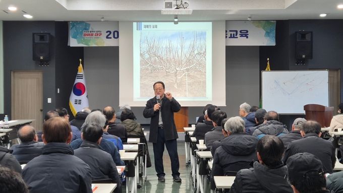 교육 첫날에는 청도복숭아연구소 김대홍 연구실장이 복숭아 병해충 관리를 주제로 강의를 진행했다. 이어 1월 7일에는 현해남 제주대학교 명예교수가 토양과 비료를 중심으로 합리적인 시비 관리와 토양 개선 방안을 설명했다. 8일에는 대구 사과 주산지인 동구 평광동 마을회관에서 한수곤 경북농민사관학교 사과다축형 재배기술과정 주임교수가 사과 다축재배 기술을 소개하며 현장 적용 사례를 공유했다.