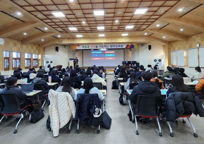 지난 12일부터 이틀간 운영된 ‘2026 (입직기) 중등(특수) 추수 직무연수’는 신규 교사 118명을 대상으로 교직 초기 단계의 심리적 불안과 적응의 어려움을 완화하고 학교 실무 전반에 대한 자신감을 높이는 데 주력했으며 특히 현장 사례 중심의 강의와 실천형 프로그램을 통해 신규 교사의 안정적인 학교 현장 안착을 지원했다.