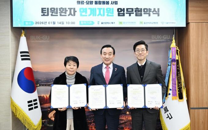 북구는 14일 구청장실에서 울산시티병원, 울산시티2병원, 울산엘리야병원과 퇴원환자의 안정적 지역사회 복귀 지원을 위한 업무 협약을 체결했다.