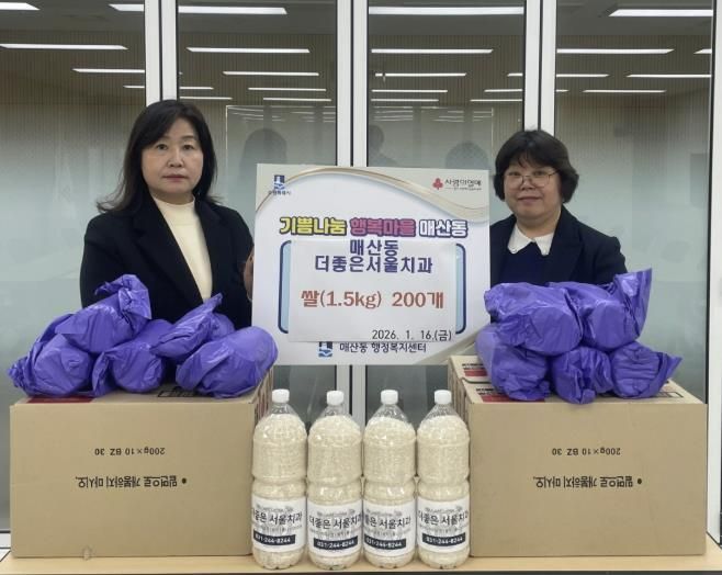 (포탈뉴스통신) 수원시 팔달구 매산동은 지난 16일, 매산동 관내에 소재한 더좋은서울치과에서 지역 내 어려운 이웃을 돕기 위해 페트병 쌀 200개를 매산동 지역사회보장협의체에 후원했다고 밝혔다.