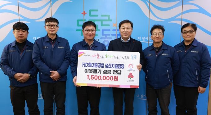 (포탈뉴스통신) HD현대중공업 생산지원담당(부서장 박필용 수석)은 1월 16일 오전 10시 동구청을 방문해 이웃돕기 성금 150만 원을 전달했다.