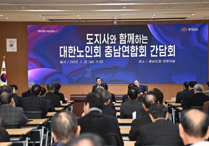 도는 16일 도청 대회의실에서 김 지사를 비롯해 강춘식 대한노인회 충남연합회장, 시군 지회장·부회장, 노인대학장 등 140여 명이 참석한 가운데 ‘대한노인회 충남연합회 신년 간담회’를 개최했다.