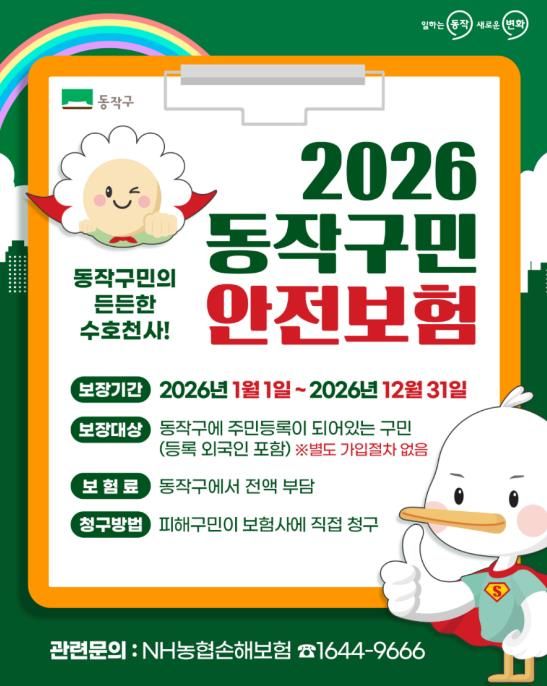 (포탈뉴스통신) 동작구는 2026년부터 ‘구민안전보험’을 확대 운영한다고 19일 밝혔다.